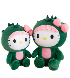 हैलो किटी ग्रीन टी के लिए थोक kawai हरे कपास से भरा हुआ पशु खिलौने बिल्ली डायनासोर लूटी